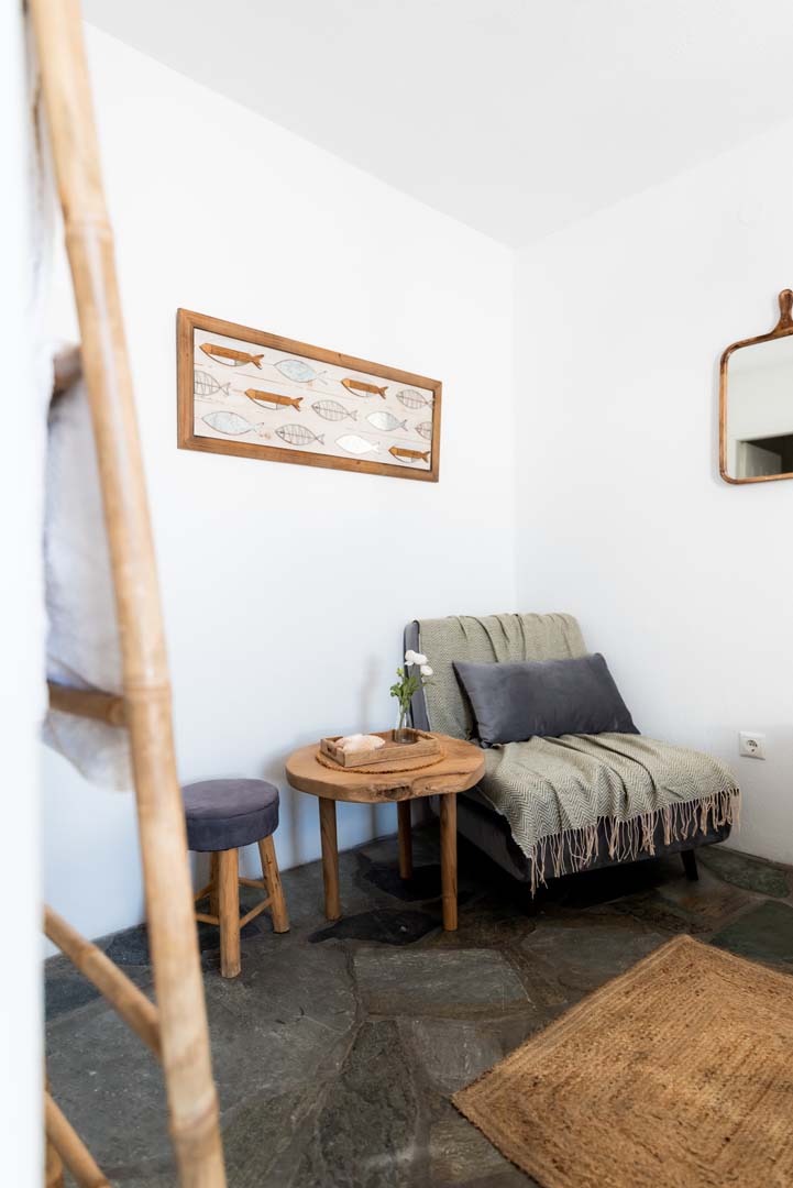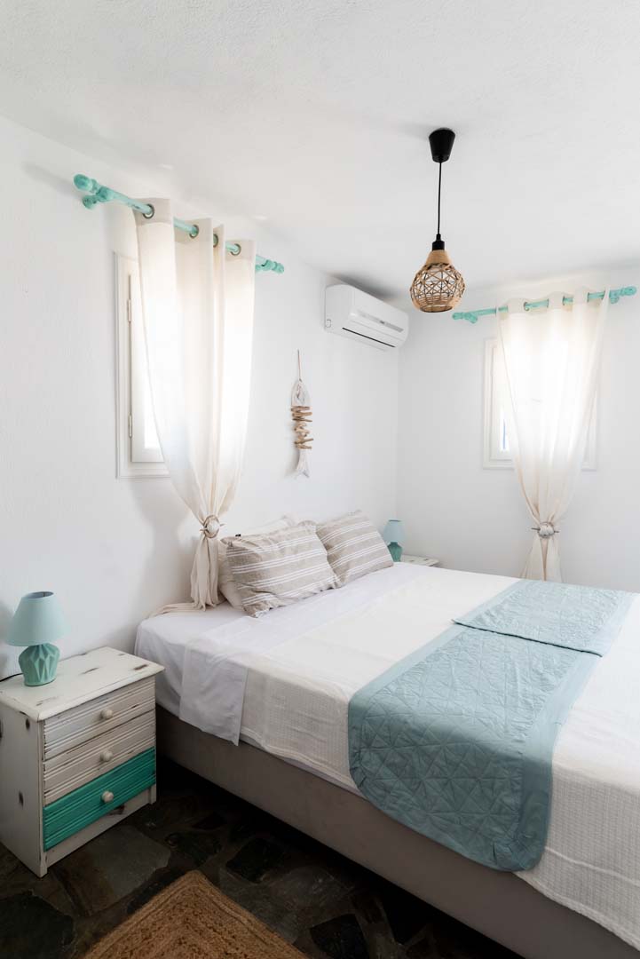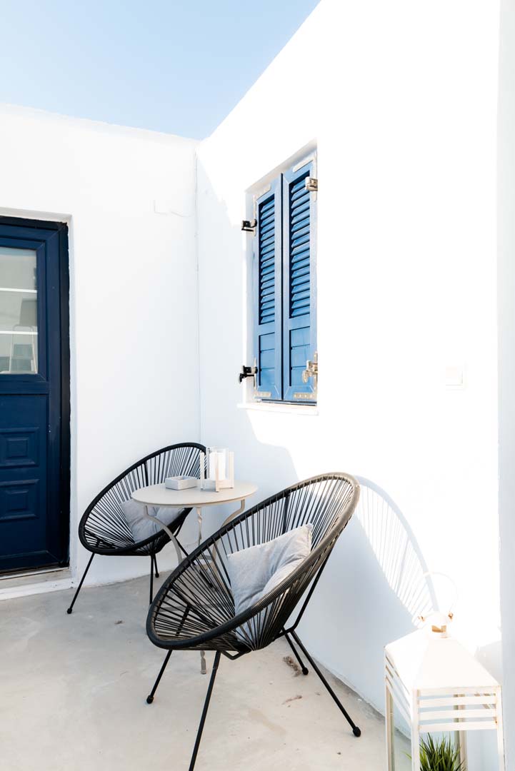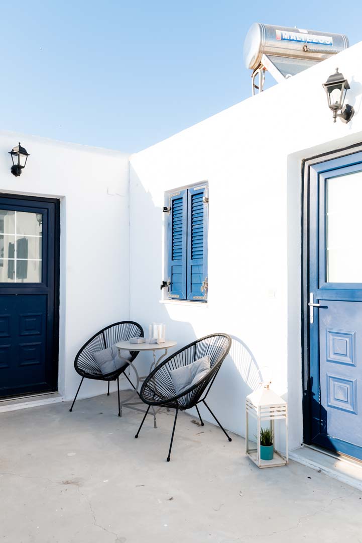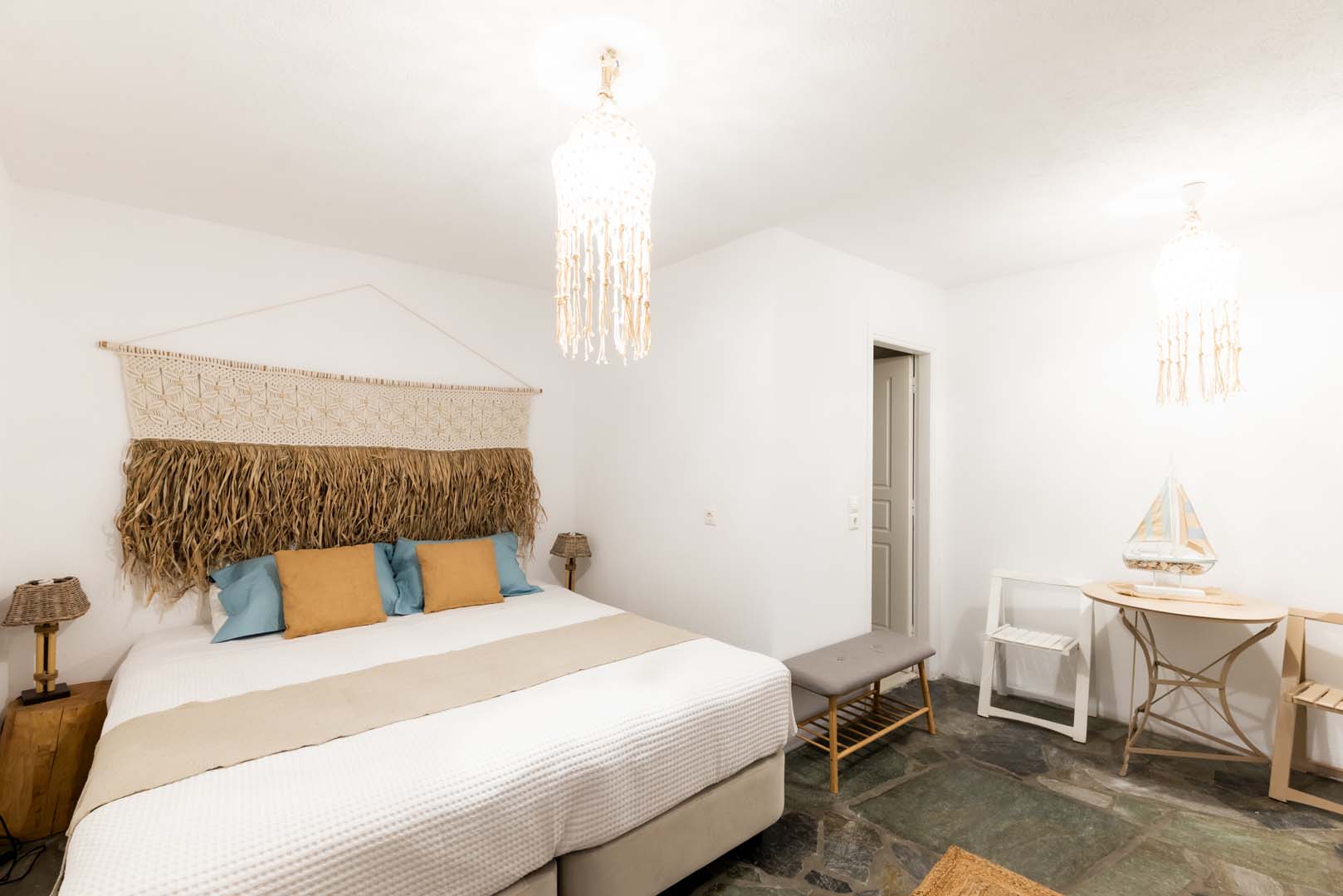 The accommodation is located just outside the town of Mykonos, 1.5 to 2 km away and 2.6 km from the island’s world-famous “mills”. The airport is 3.4 km away and the port is at a distance of 2.8 km. Visitors can reach Megali Ammos in 20 minutes on foot. Agia Anna and Agios Charalambos are also very close by beaches.