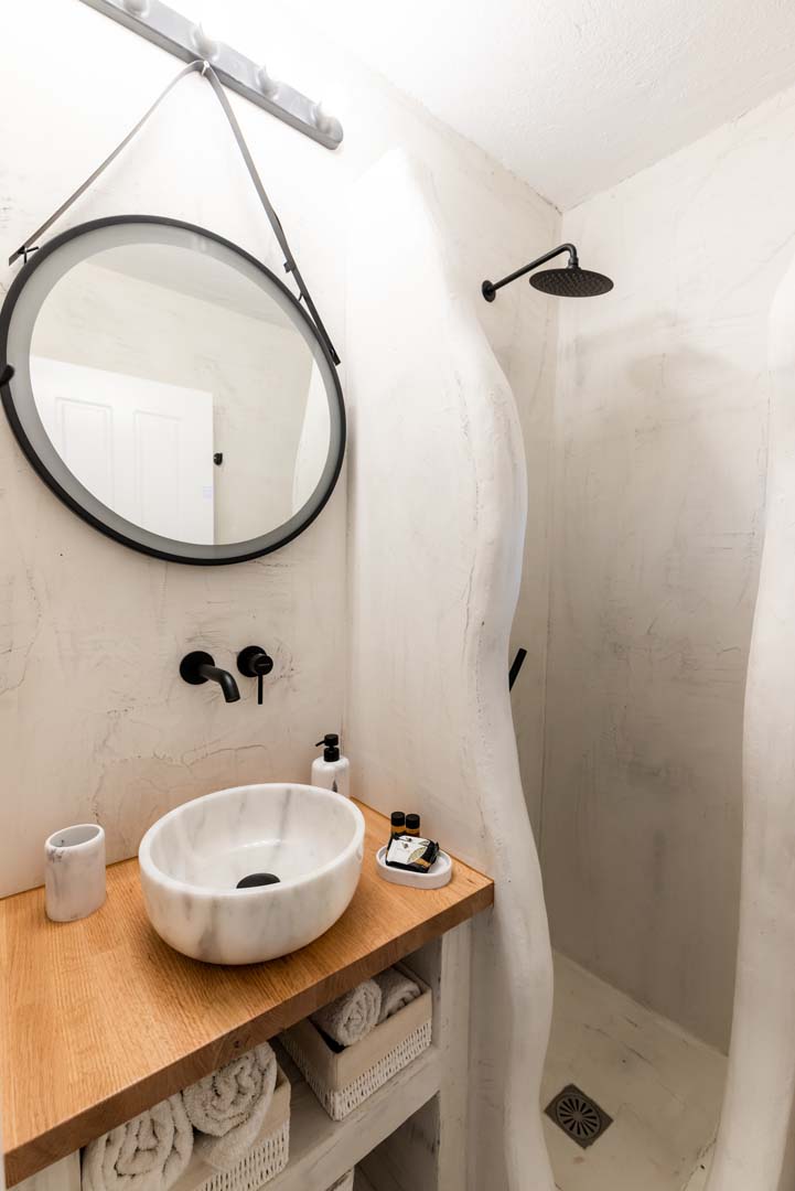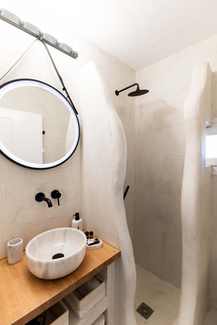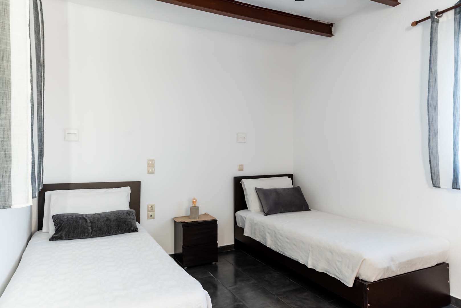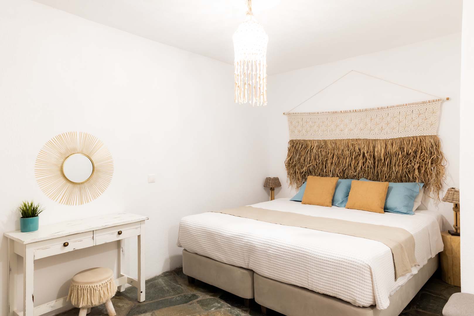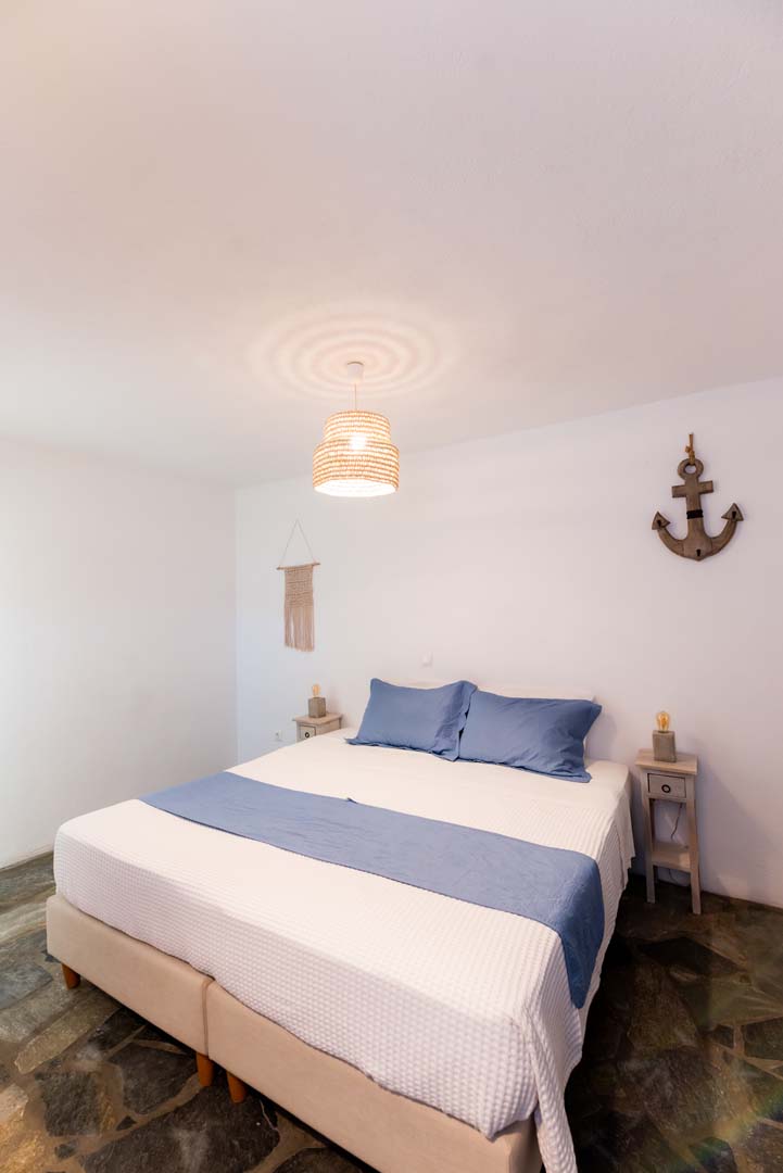 The accommodation is located just outside the town of Mykonos, 1.5 to 2 km away and 2.6 km from the island’s world-famous “mills”. The airport is 3.4 km away and the port is at a distance of 2.8 km. Visitors can reach Megali Ammos in 20 minutes on foot. Agia Anna and Agios Charalambos are also very close by beaches.