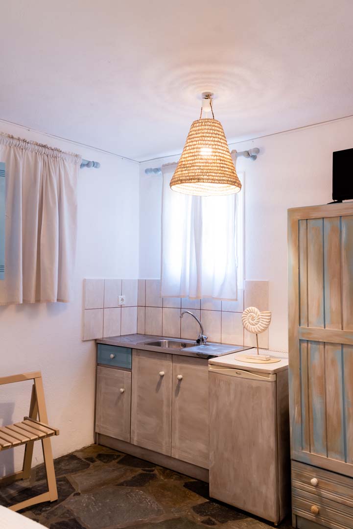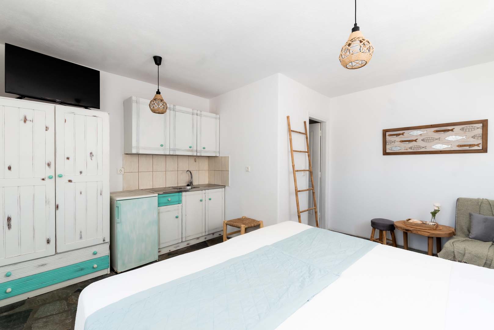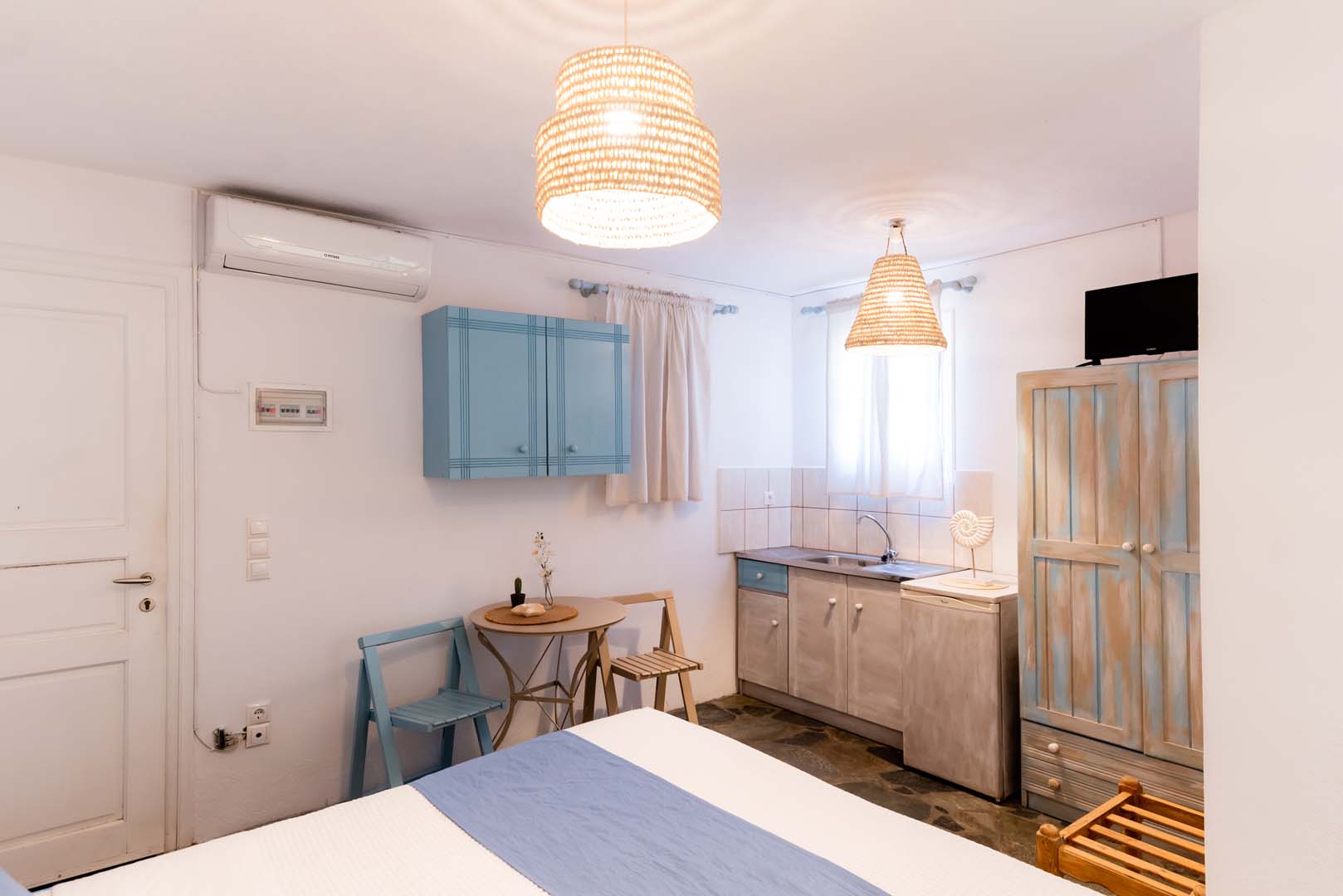The accommodation is a perfect choice that offers a quiet setting to provide you with the best family or even couples vacation. At the same time, however, it is close to the “heart of Mykonos”. The studios and the apartments are fully equipped with air conditioning, fridge, kitchenette and kitchen equipment, TV and hairdryer. There is also free WiFi and parking.